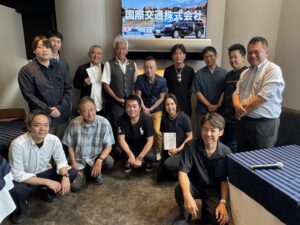 国際交通(kmG東京)社員募集エントリーフォームのリンクバナー、社員と社長の集合写真